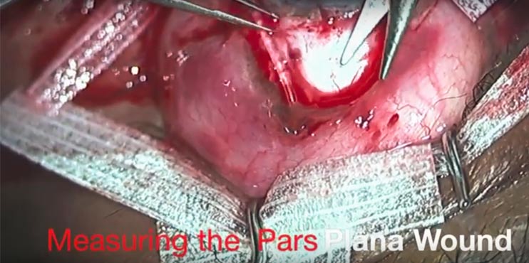 This scissors has been designed for use in glaucoma and oculoplastic procedures. It combines the Katena Westcott Scissors (small blade, K4-3000) with nine 1mm landmarks that are laser etched on the surface of the anterior blade. These marks allow the surgeon to make measurements intra-operatively eliminating the need to switch instruments in the middle of the procedure.